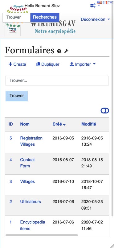 Application Web de base de données et de connaissances par Bernard Sfez en utilisant Tiki